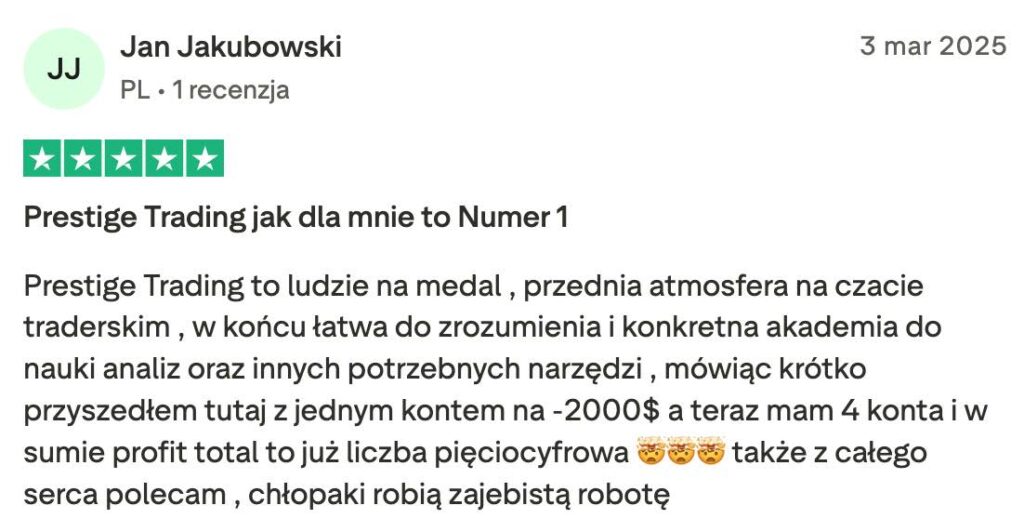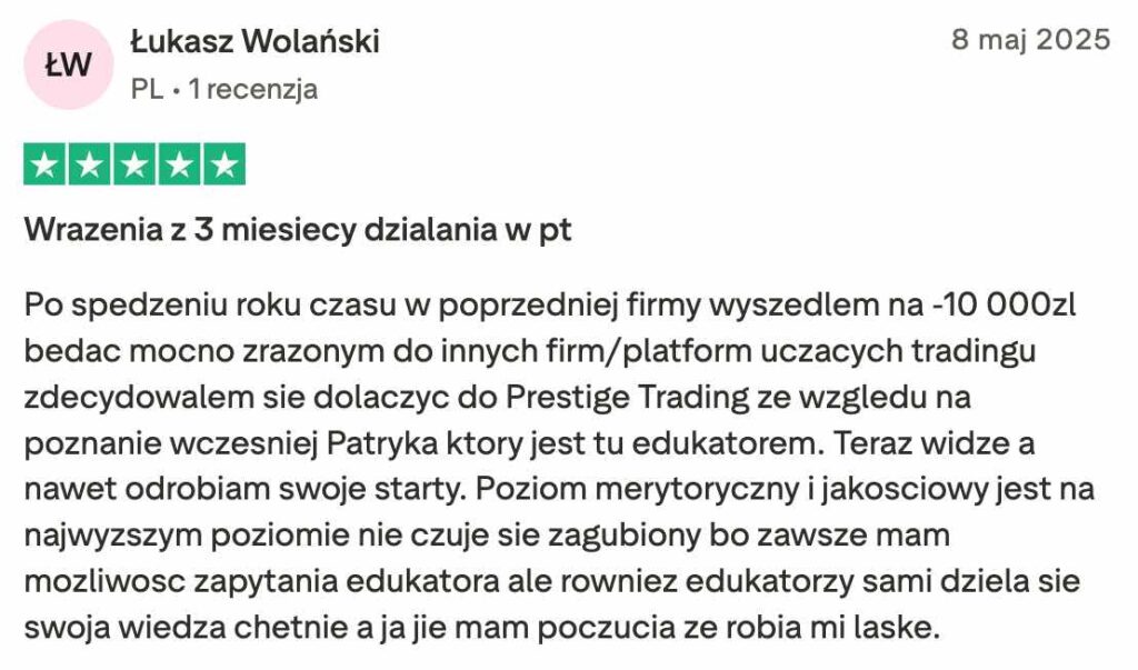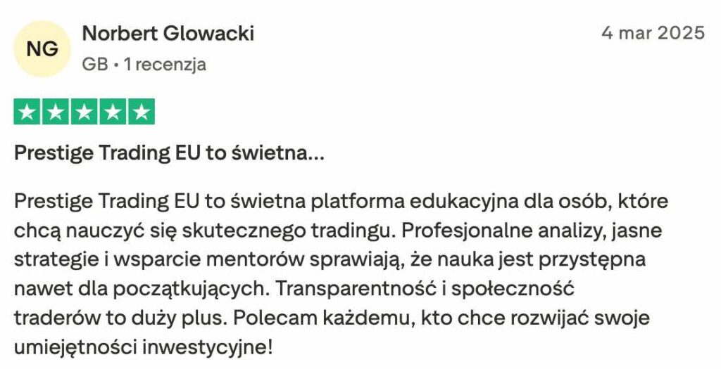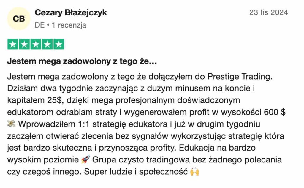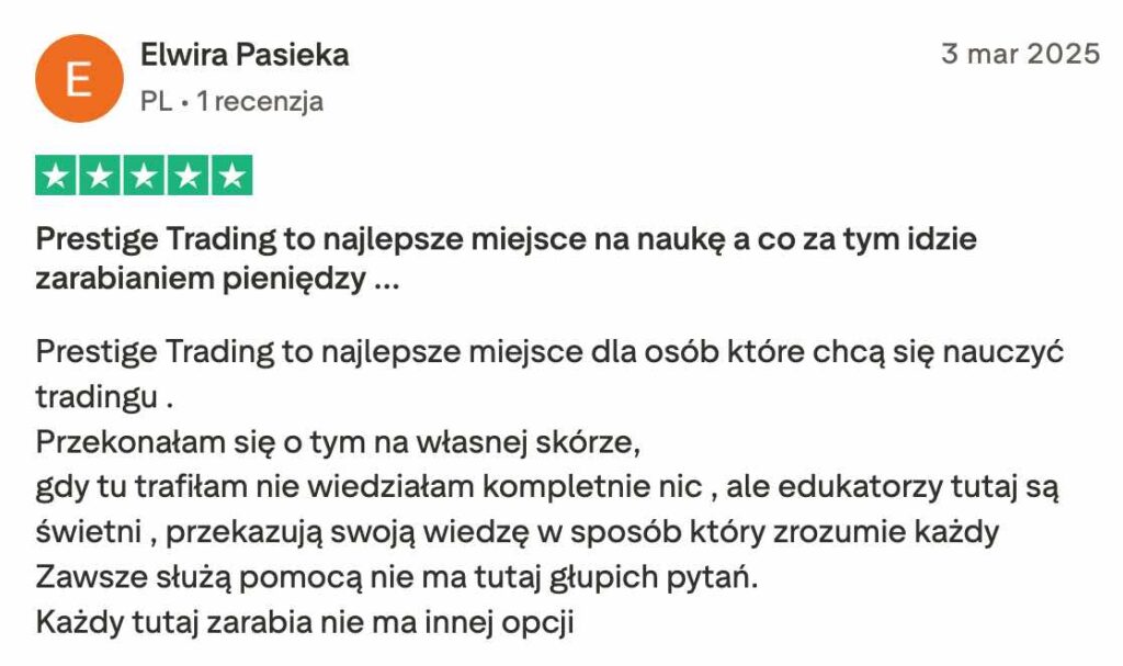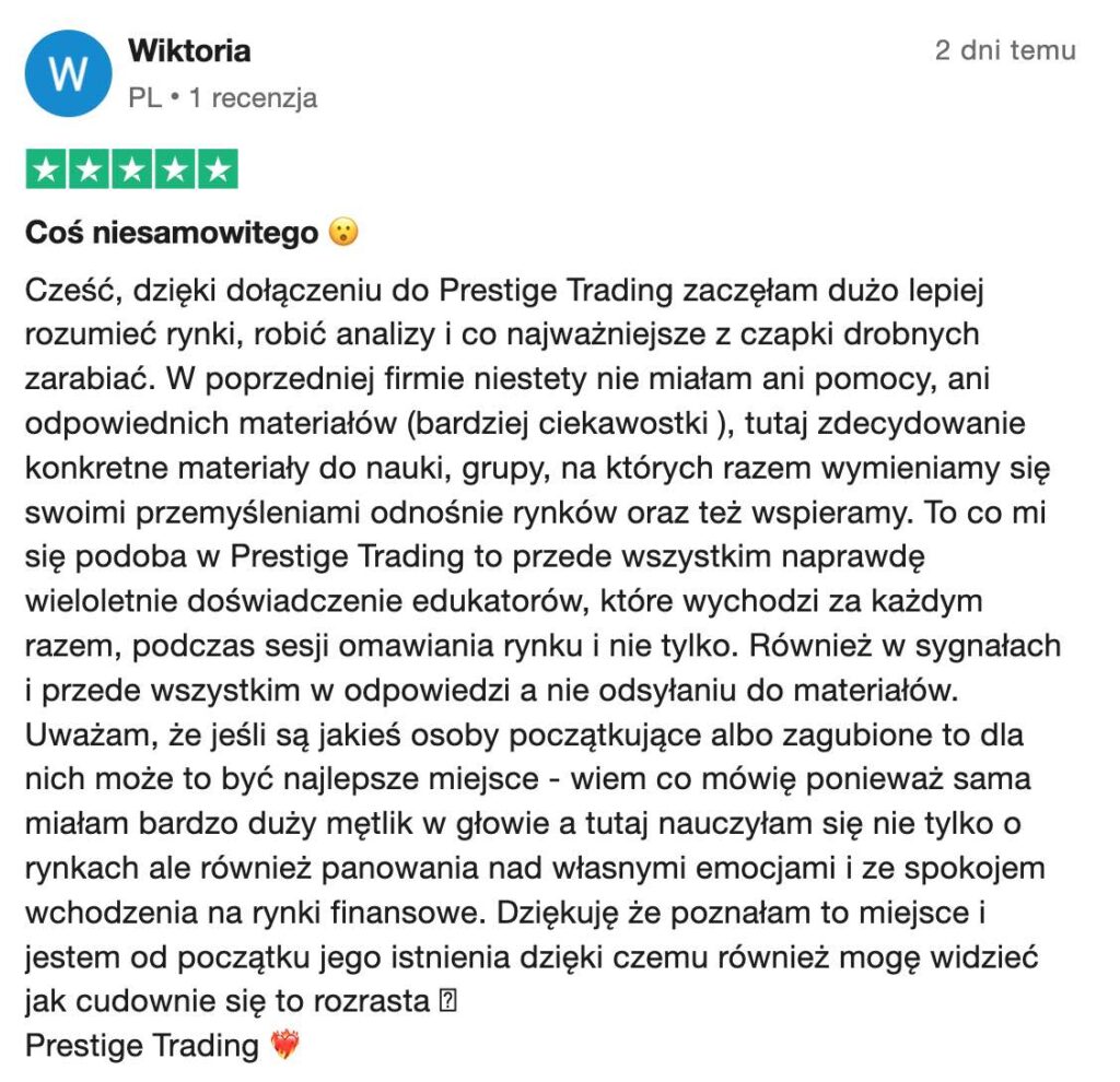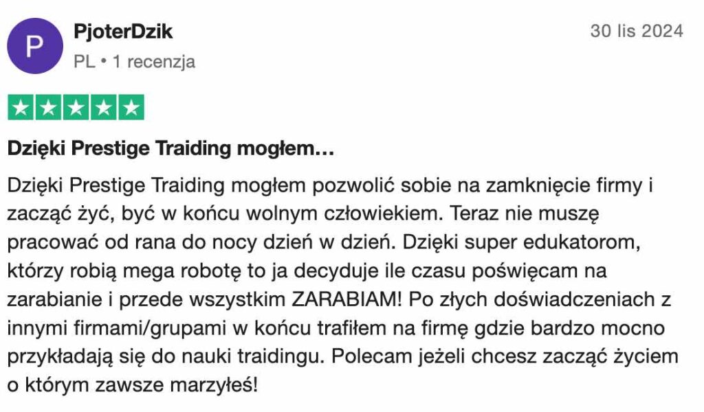 Prestige Trading to w pełni transparentna platforma edukacyjna, która koncentruje się na prawdziwym tradingu i rozwijaniu realnych umiejętności. Nic ponadto.