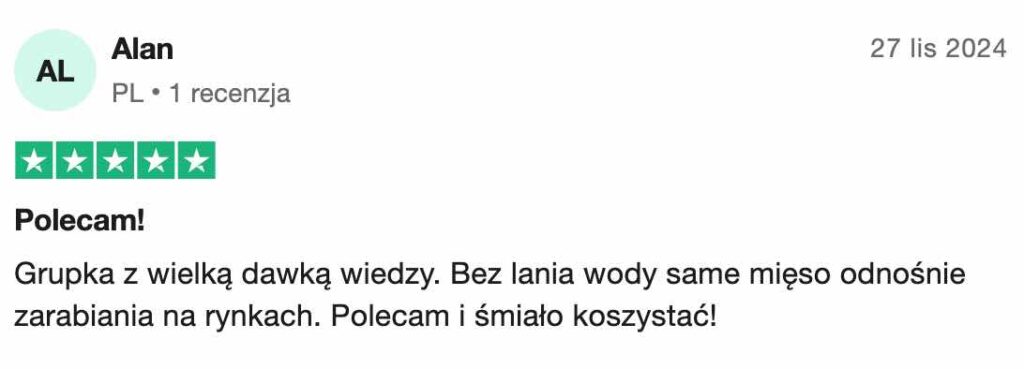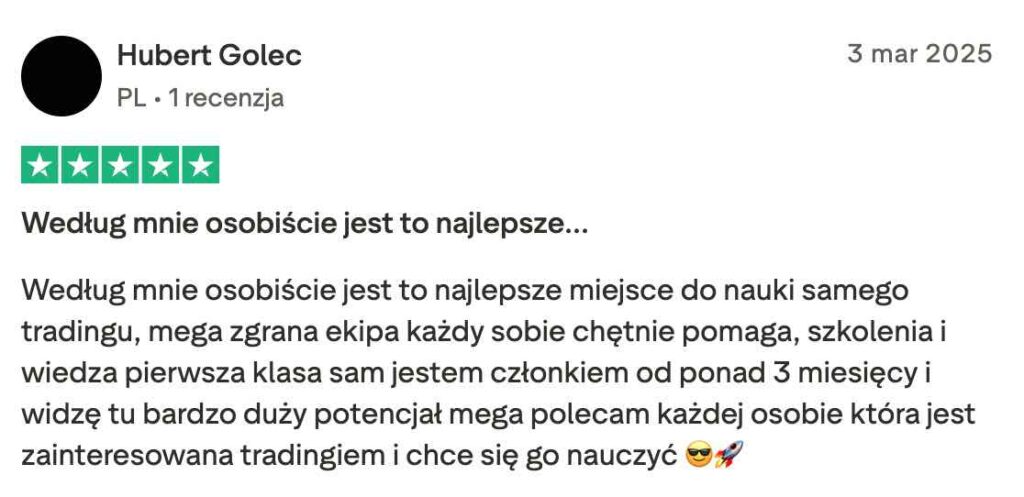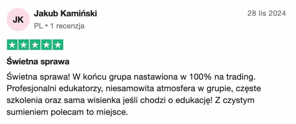 Grupa daje narzędzia i wiedzę, aby zacząć zarabiać na rynku, jednak wyniki zależą od Twojej pracy, zaangażowania i czasu. Trading to umiejętność, która rozwija się z praktyką.